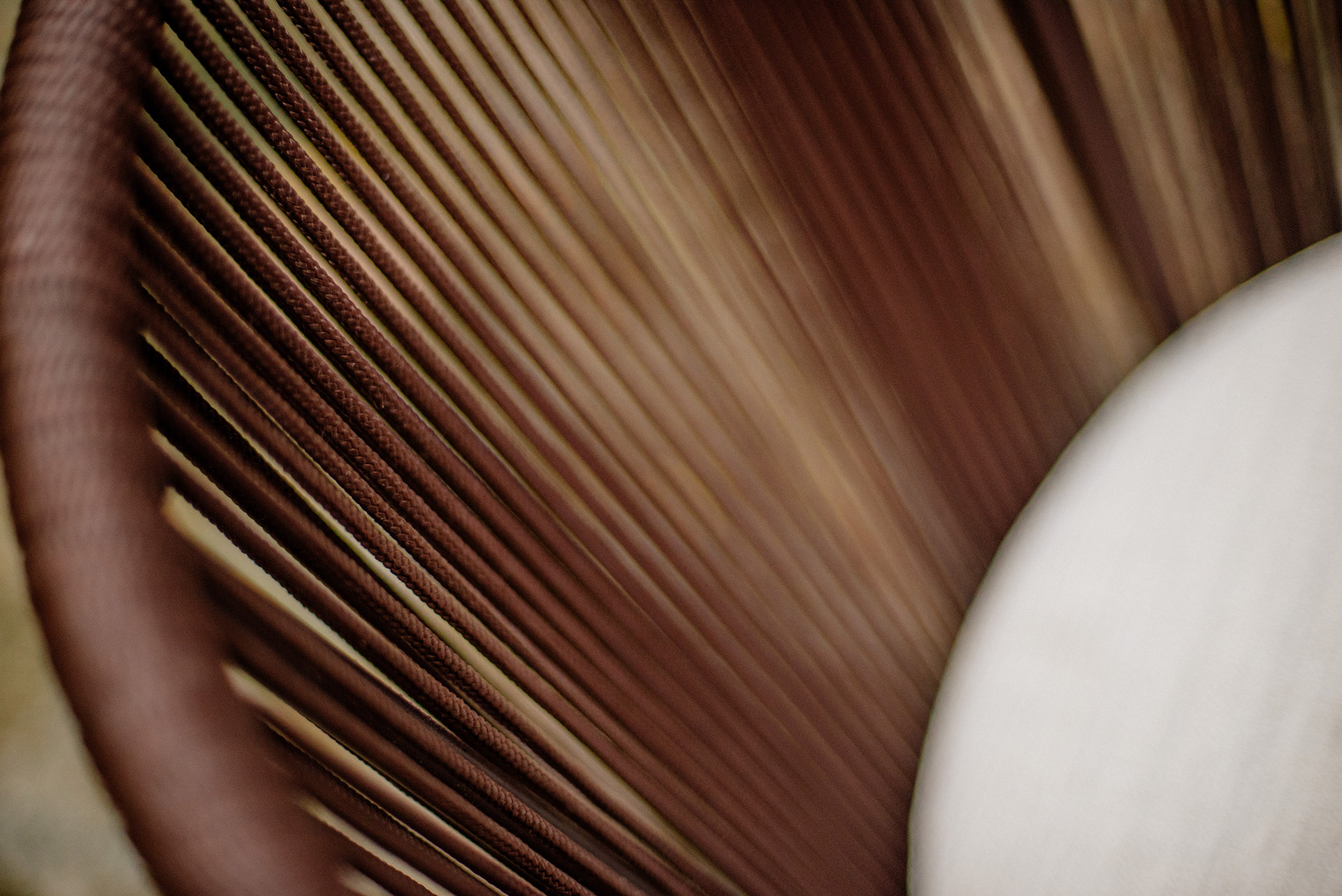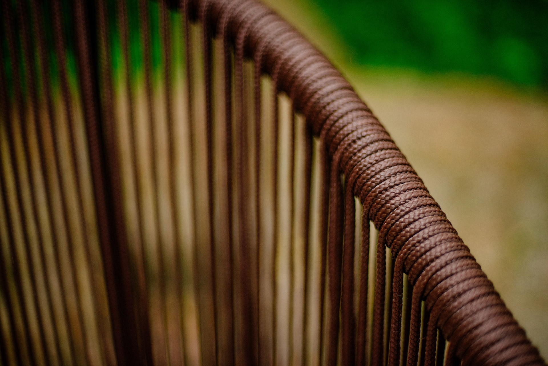Estrutura em alumínio, pintura eletrostática e revestimento em corda náutica cilíndrica 6mm.