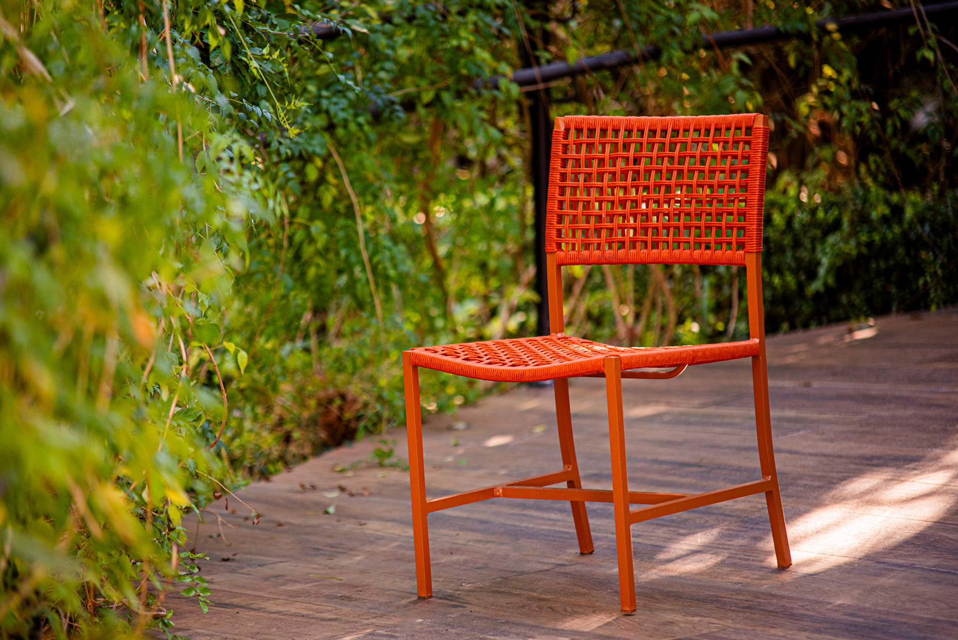 Estrutura em alumínio, pintura eletrostática e revestimento em corda náutica cilíndrica 4mm.