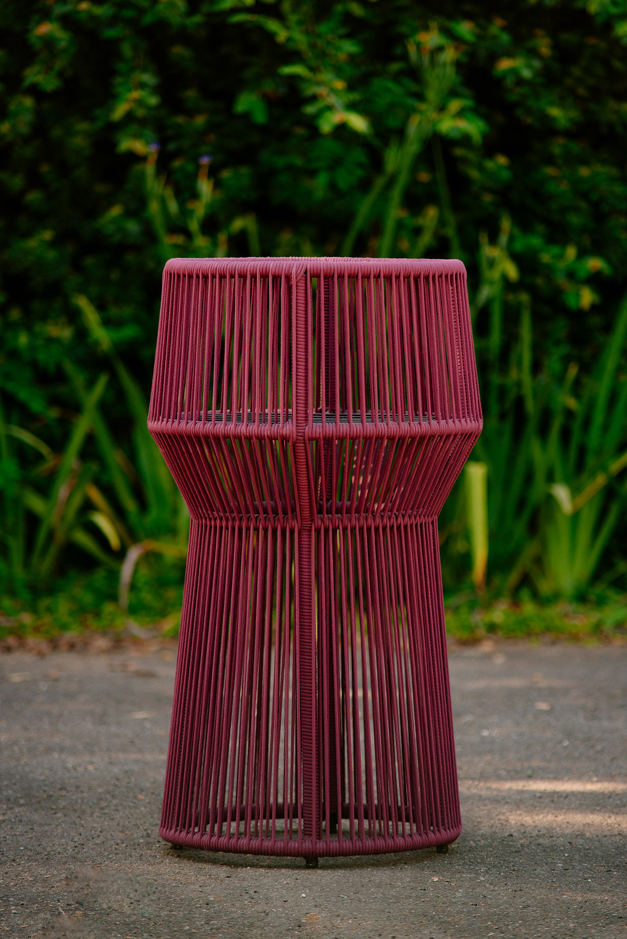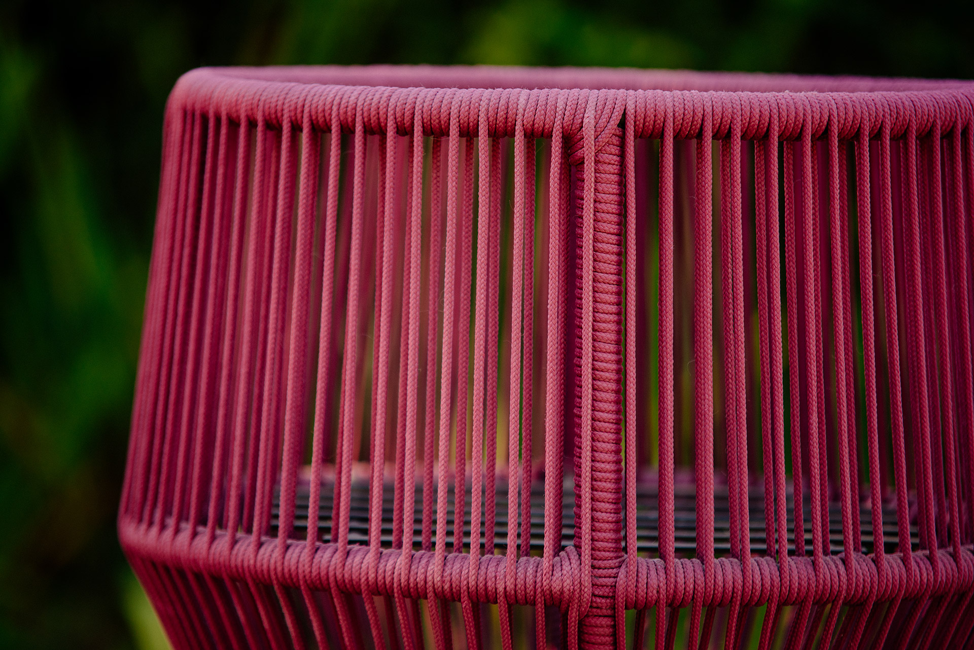 Estrutura em alumínio, pintura eletrostática e revestimento em corda náutica cilíndrica 6mm.