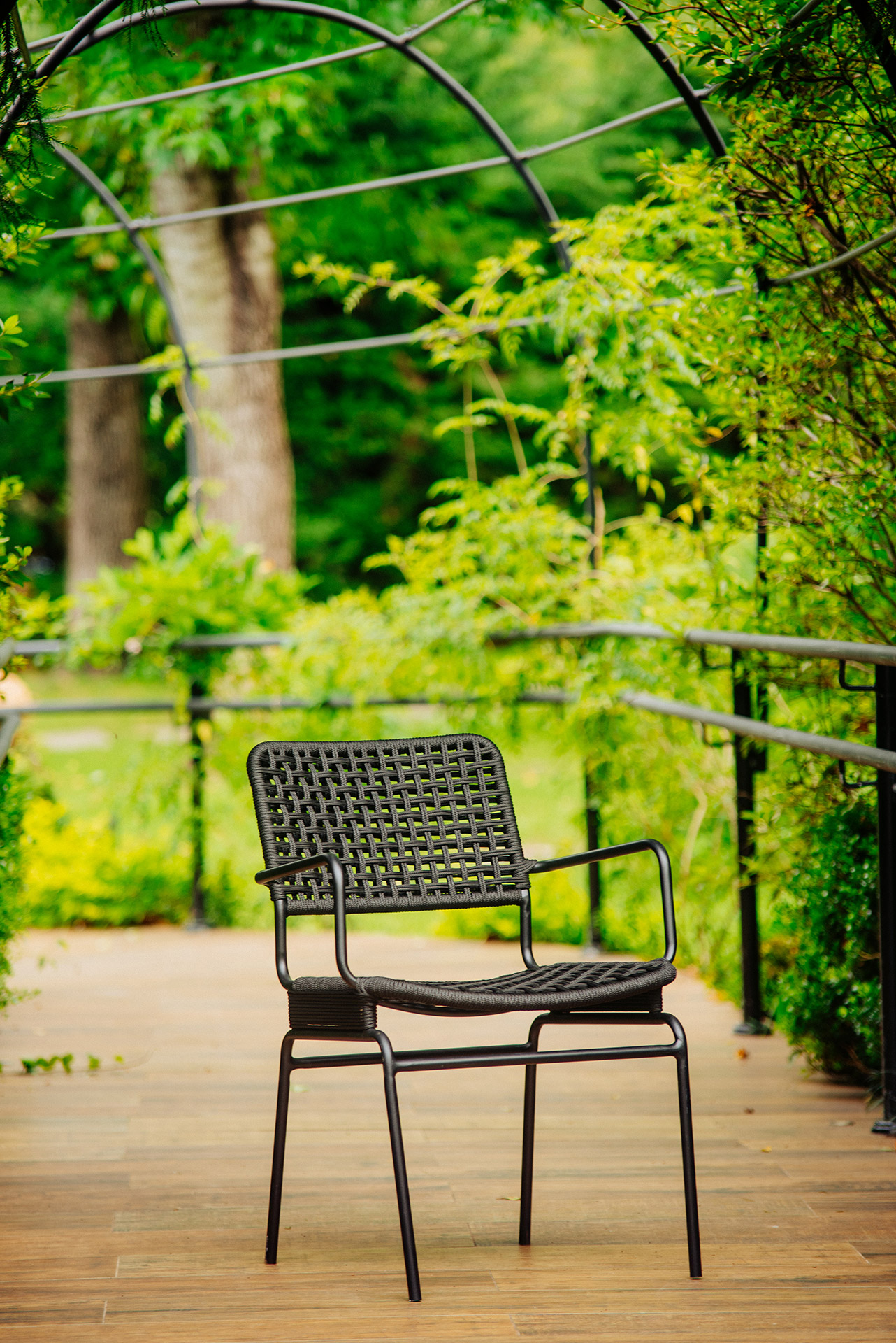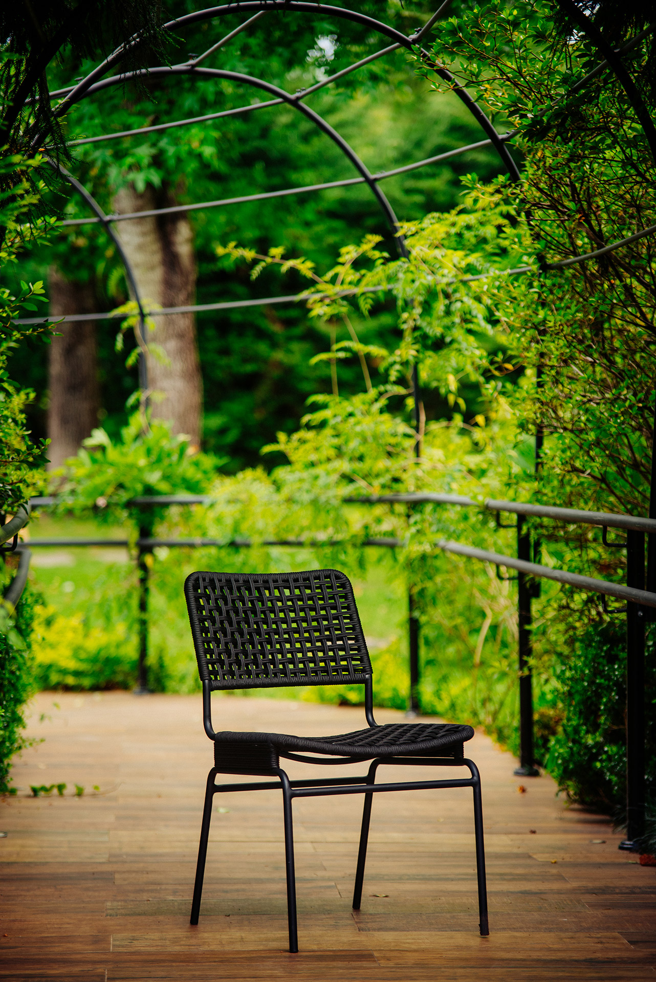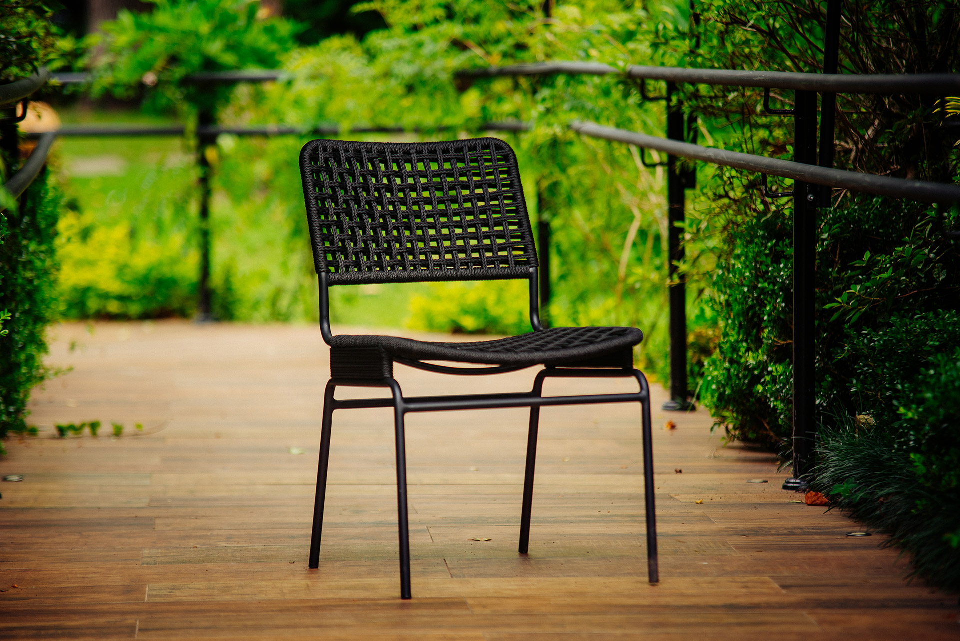 Estrutura em alumínio, pintura eletrostática e revestimento em corda náutica cilíndrica 6mm.