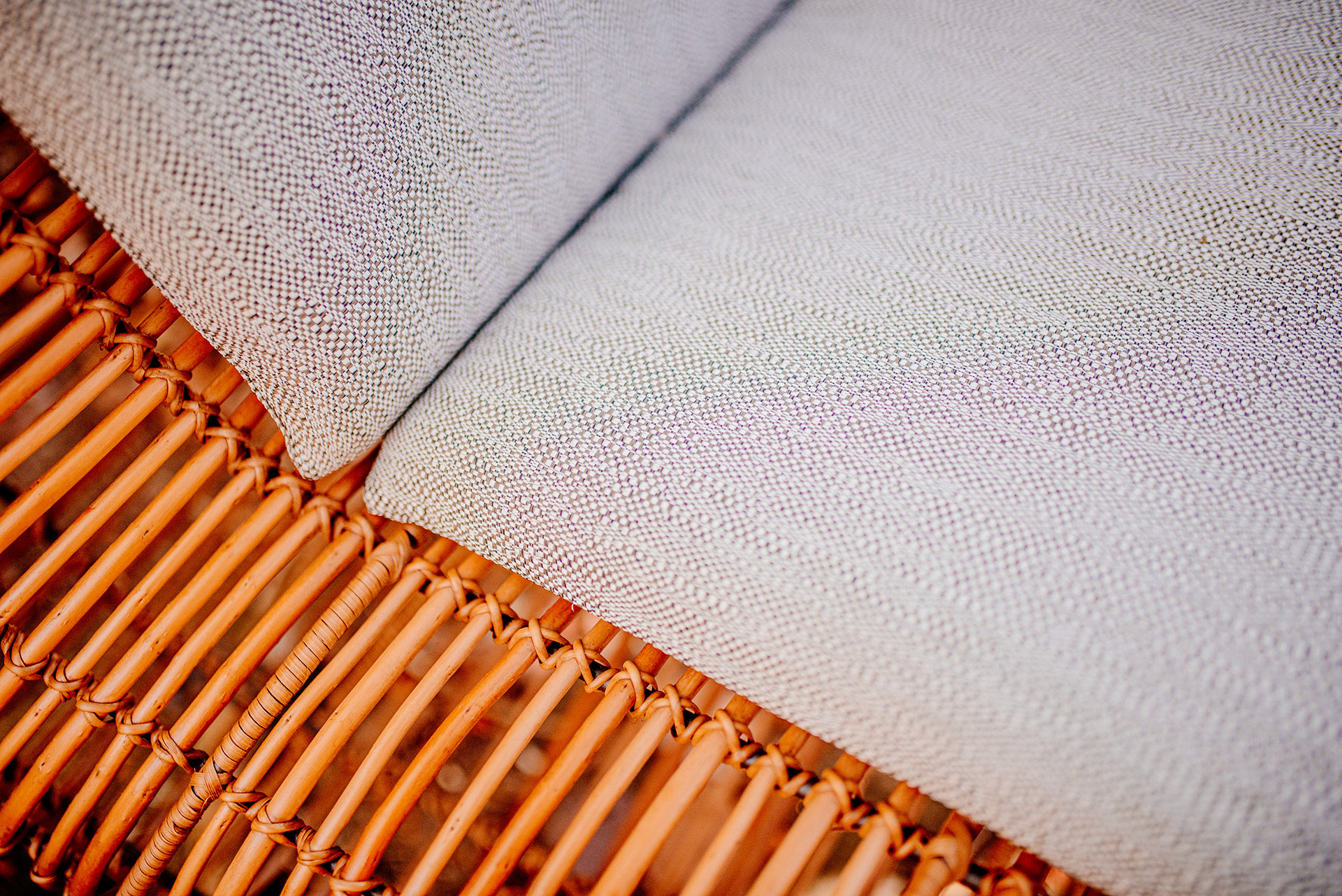 Estrutura em ferro galvanizado e revestimento em vime e amarras em junco.