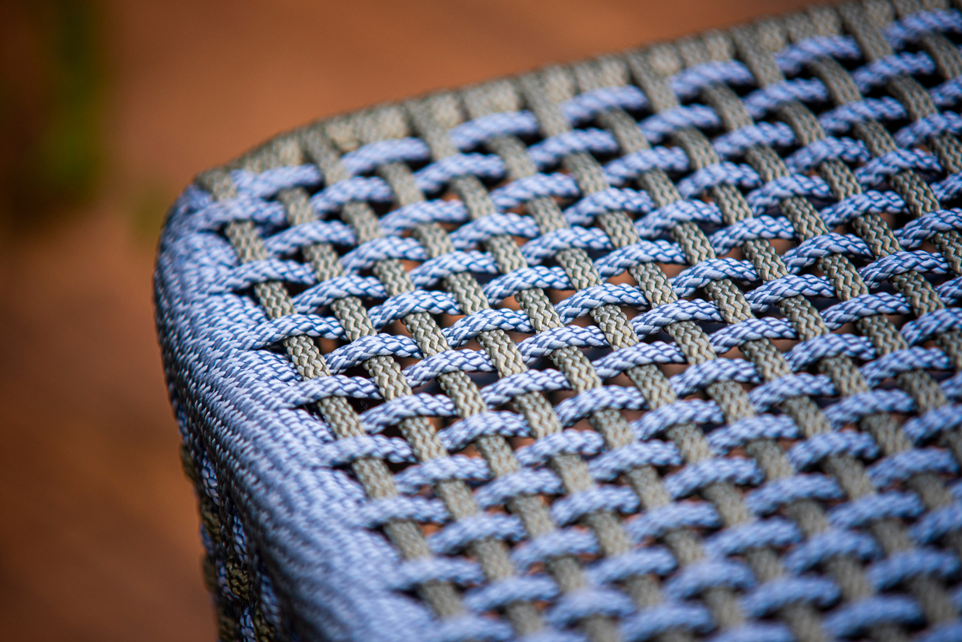 Estrutura em alumínio, pintura eletrostática e revestimento em corda náutica chata 10mm.