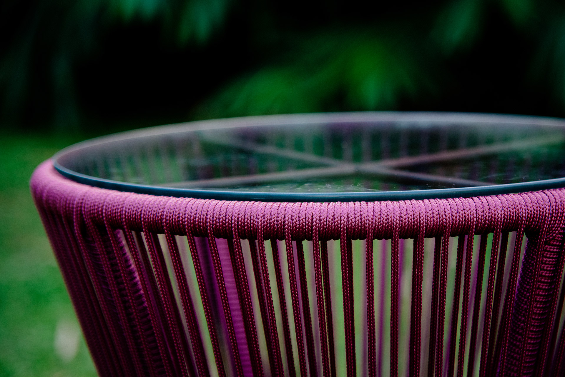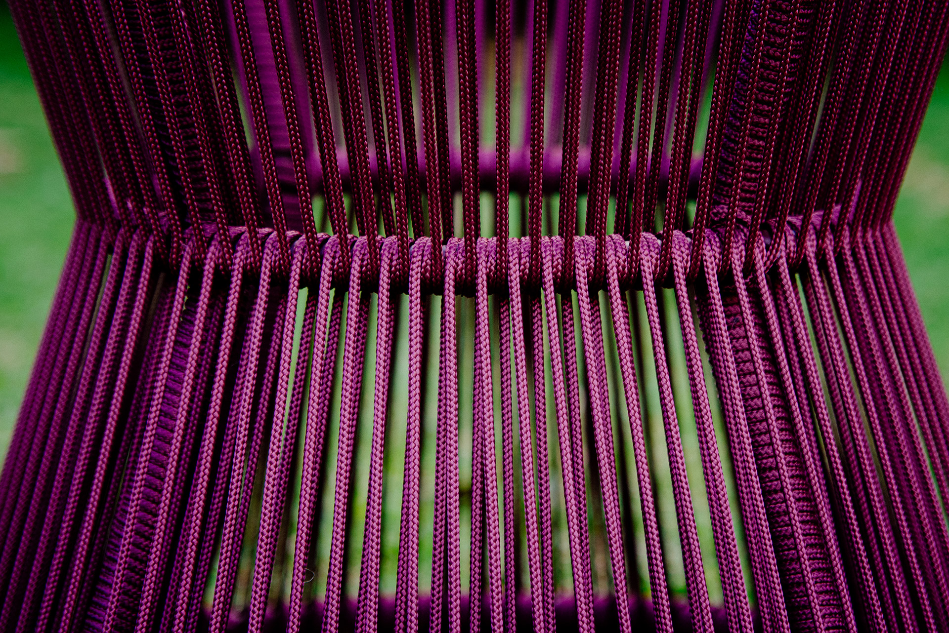 Estrutura em alumínio, pintura eletrostática e revestimento em corda náutica cilíndrica 6mm.