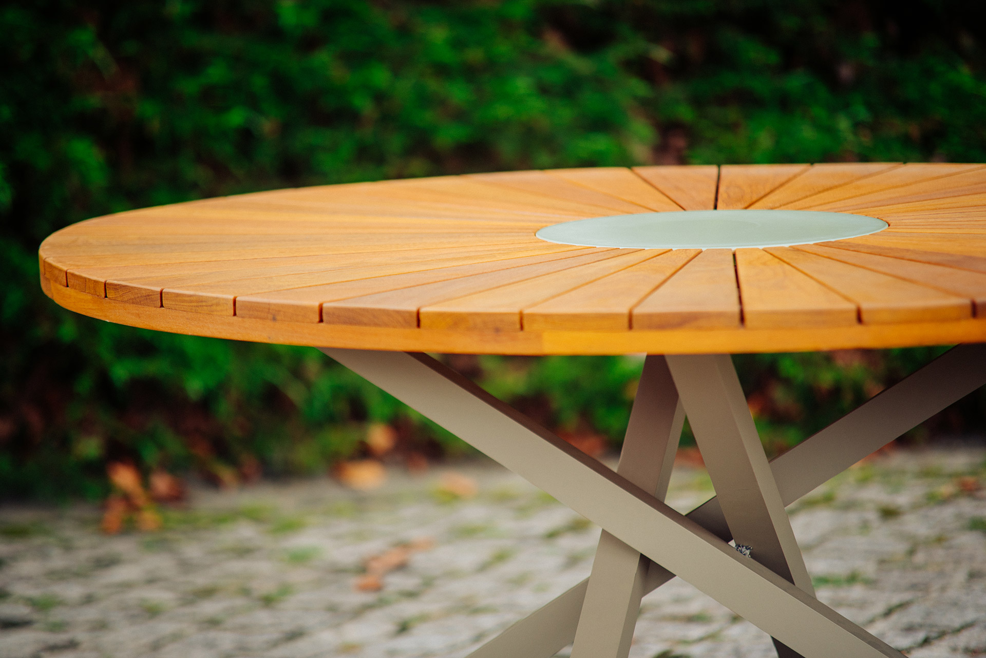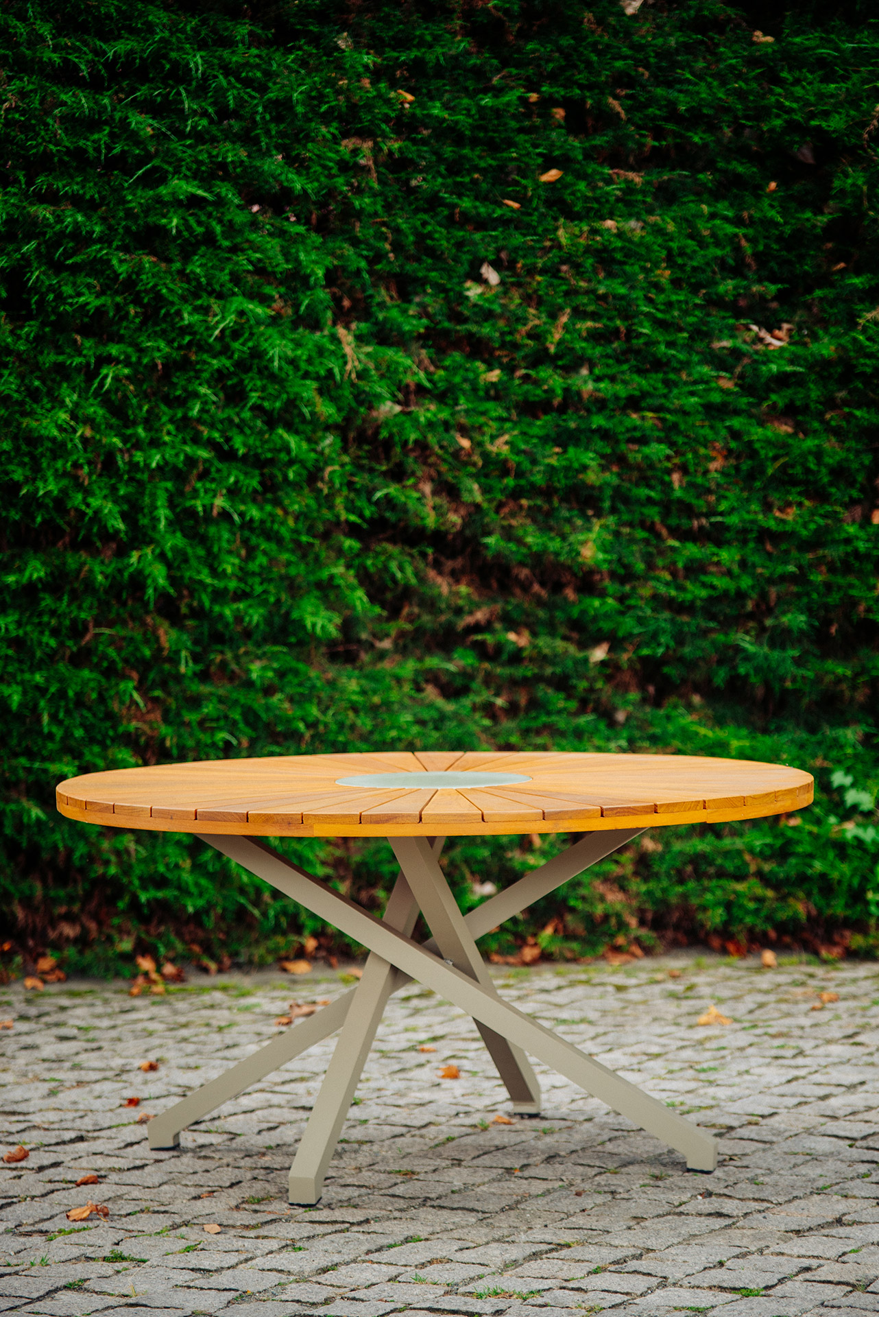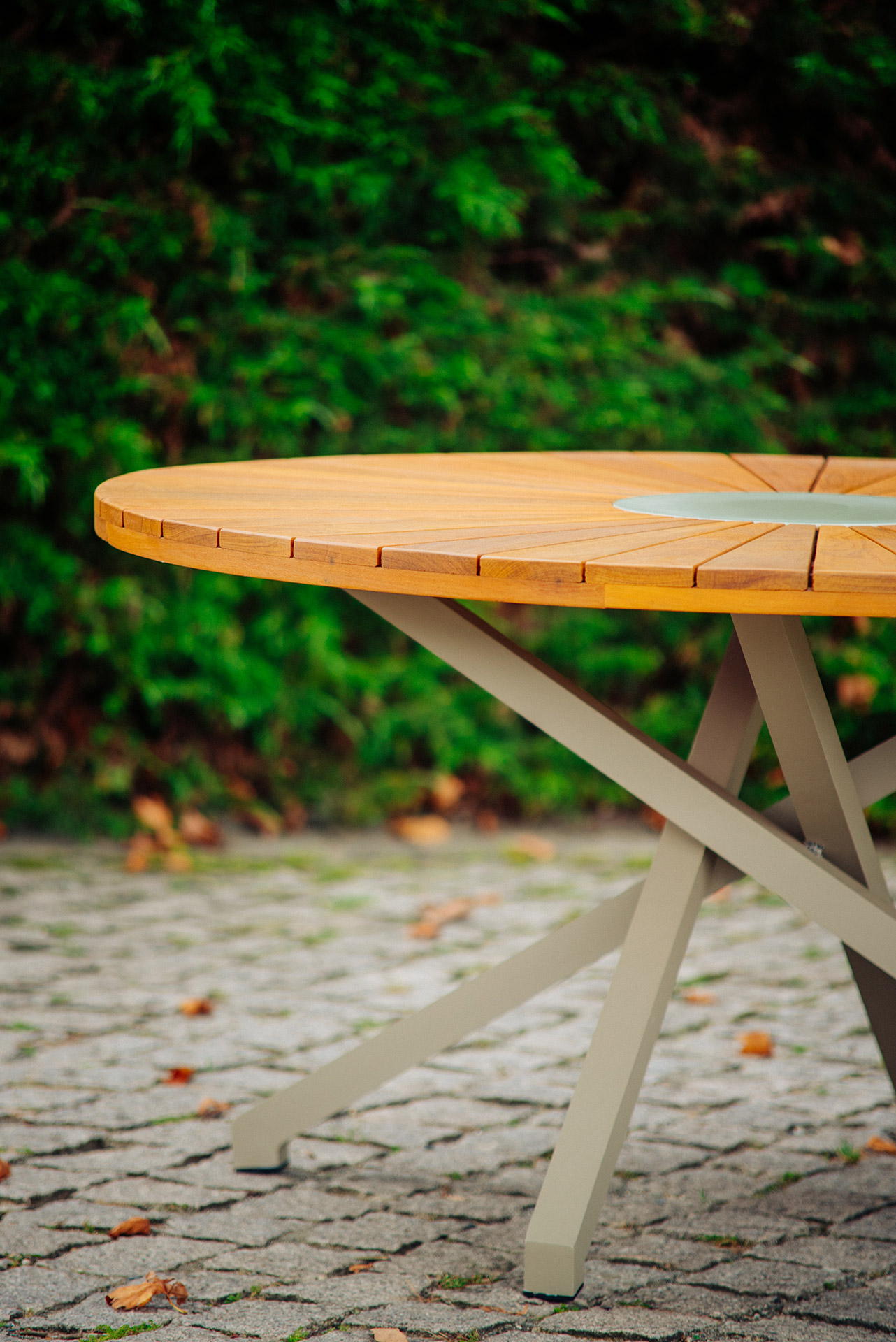 A mesa Matera é uma representação do estilo contemporâneo, projetada para adicionar elegância e funcionalidade ao seu espaço. Com seus pés únicos compostos por barras de alumínio dispostas em várias direções, esta mesa oferece uma estética moderna e diferenciada. Seu tampo em formato de pizza em madeira proporciona uma superfície espaçosa para refeições e momentos de convívio. Além disso, a opção de centro giratório em alumínio ou vidro confere versatilidade e praticidade. Seja em uma sala de jantar contemporânea ou em espaços de convívio ao ar livre, a mesa Matera é a escolha ideal para agregar um toque de modernidade e funcionalidade.