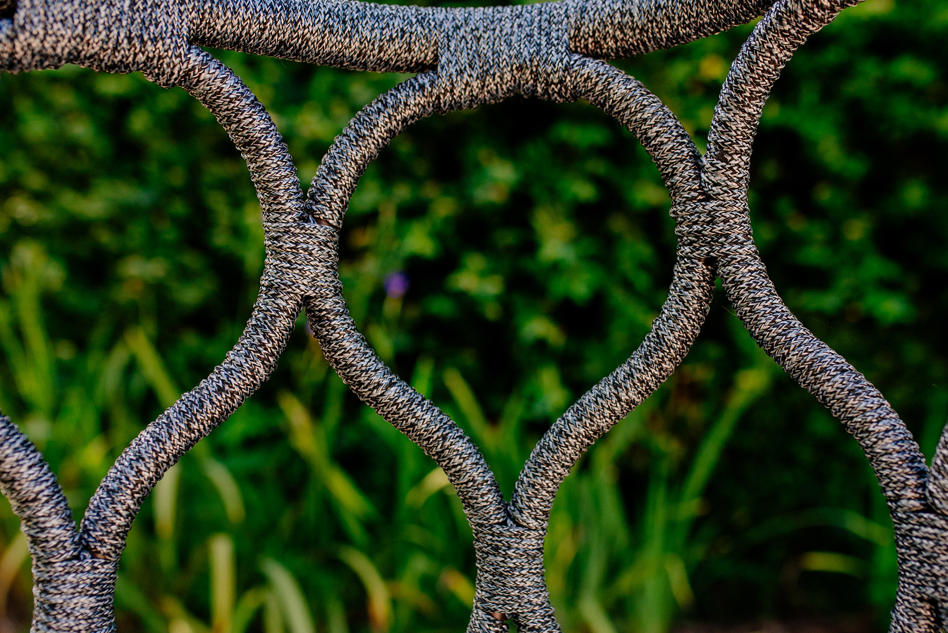 Estrutura em alumínio, pintura eletrostática e revestimento em corda náutica cilíndrica 6mm.