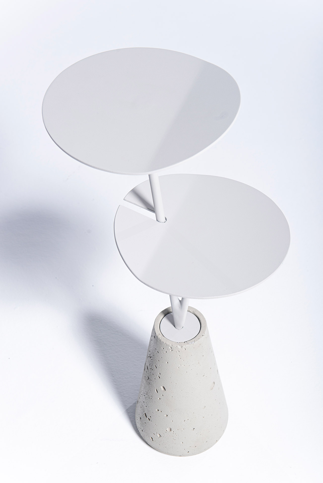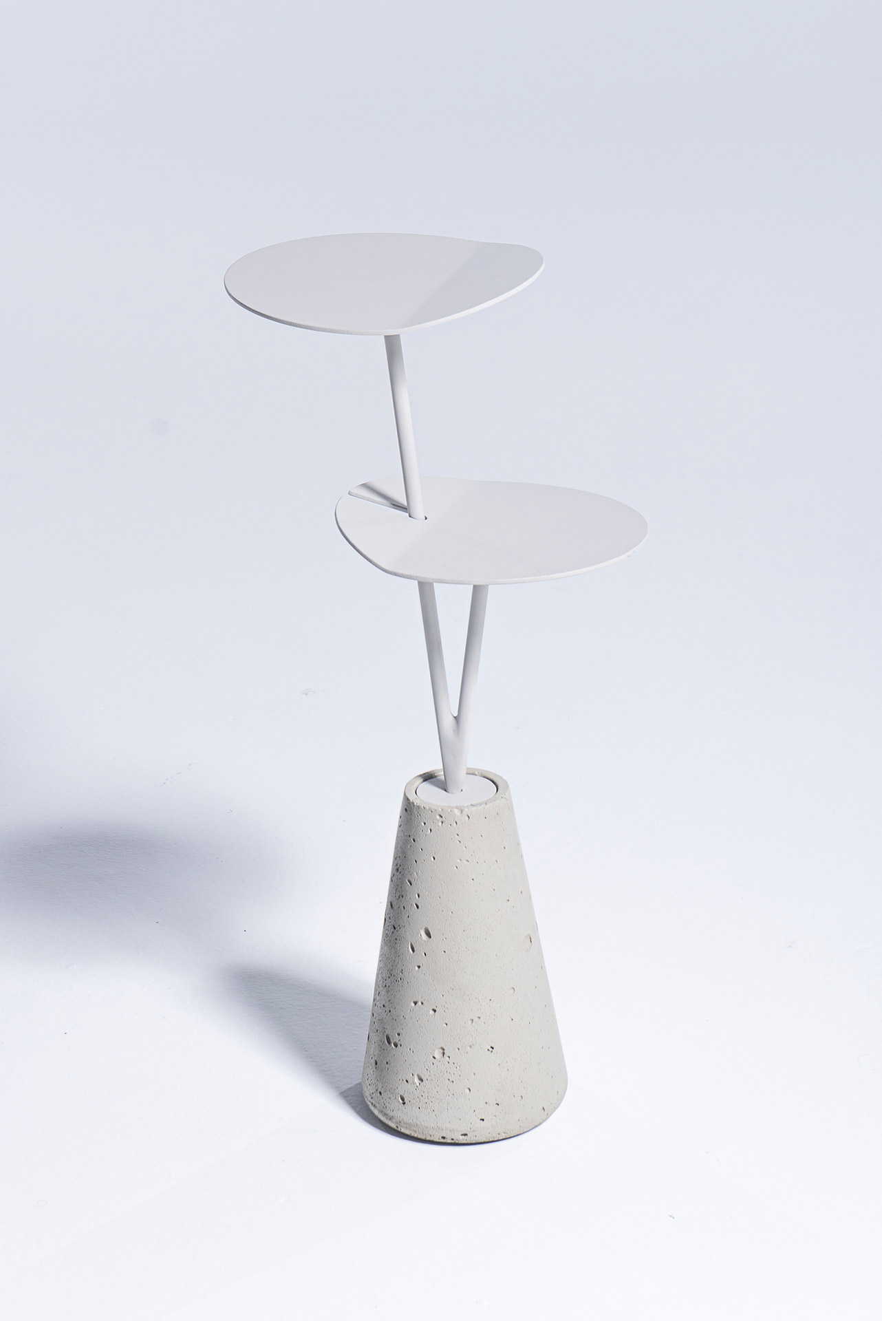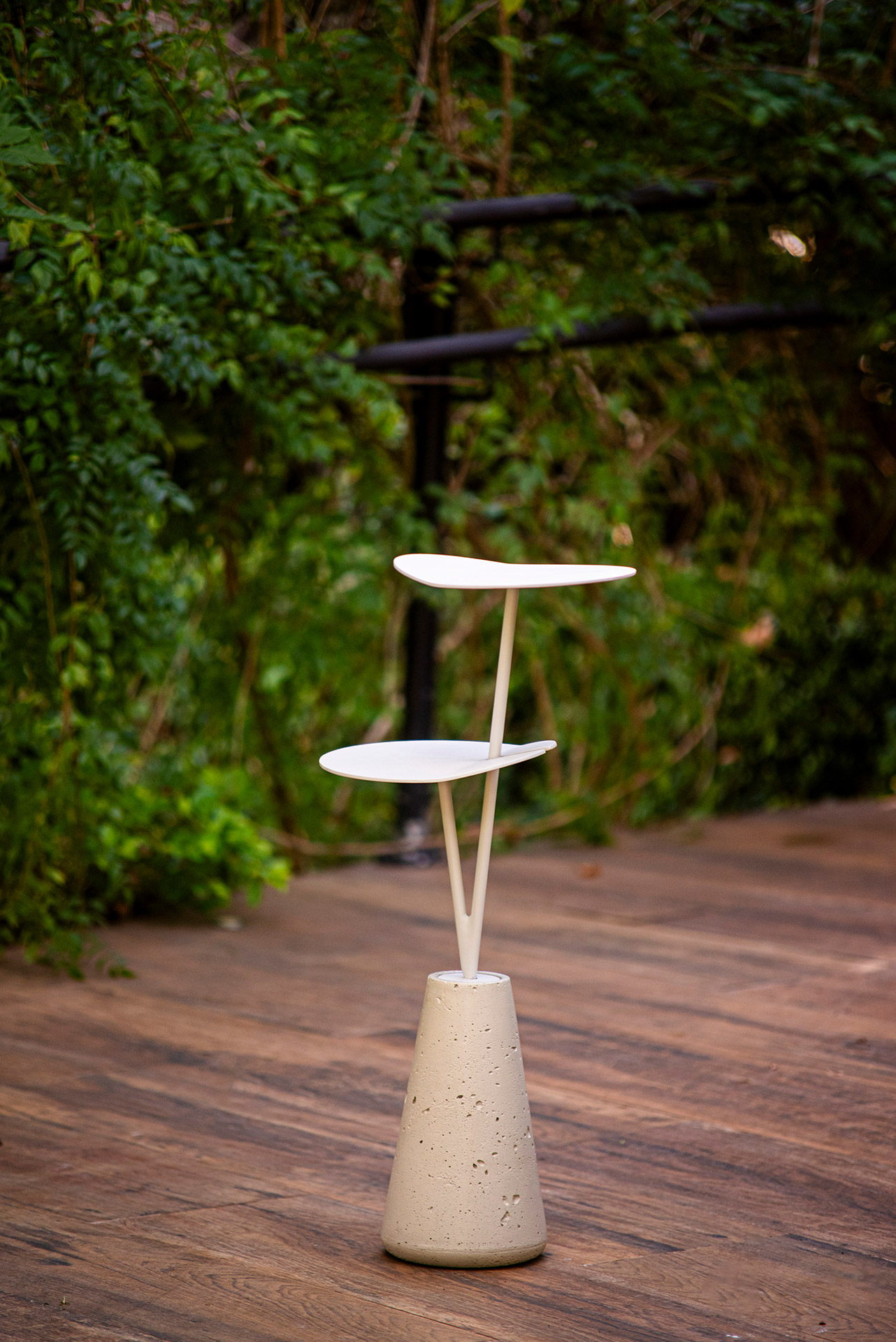 A mesa lateral Petit faz alusão a uma flor conhecida popularmente como copo-de-leite ou boca-de-jarro. Os detalhes cuidadosos na concepção destacam-se na escolha dos elementos que capturam a essência da flor. As bordas erguidas das pétalas conferem um toque estético único e servem de suporte prático para objetos decorativos. A base em concreto apresenta uma representação visualmente impactante de um vaso, ressaltando a harmonia entre a natureza e a construção. Inserida em um ambiente, a mesa Petit cria uma narrativa estética que conecta o espaço à delicadeza da natureza, transformando-o em um refúgio encantador.