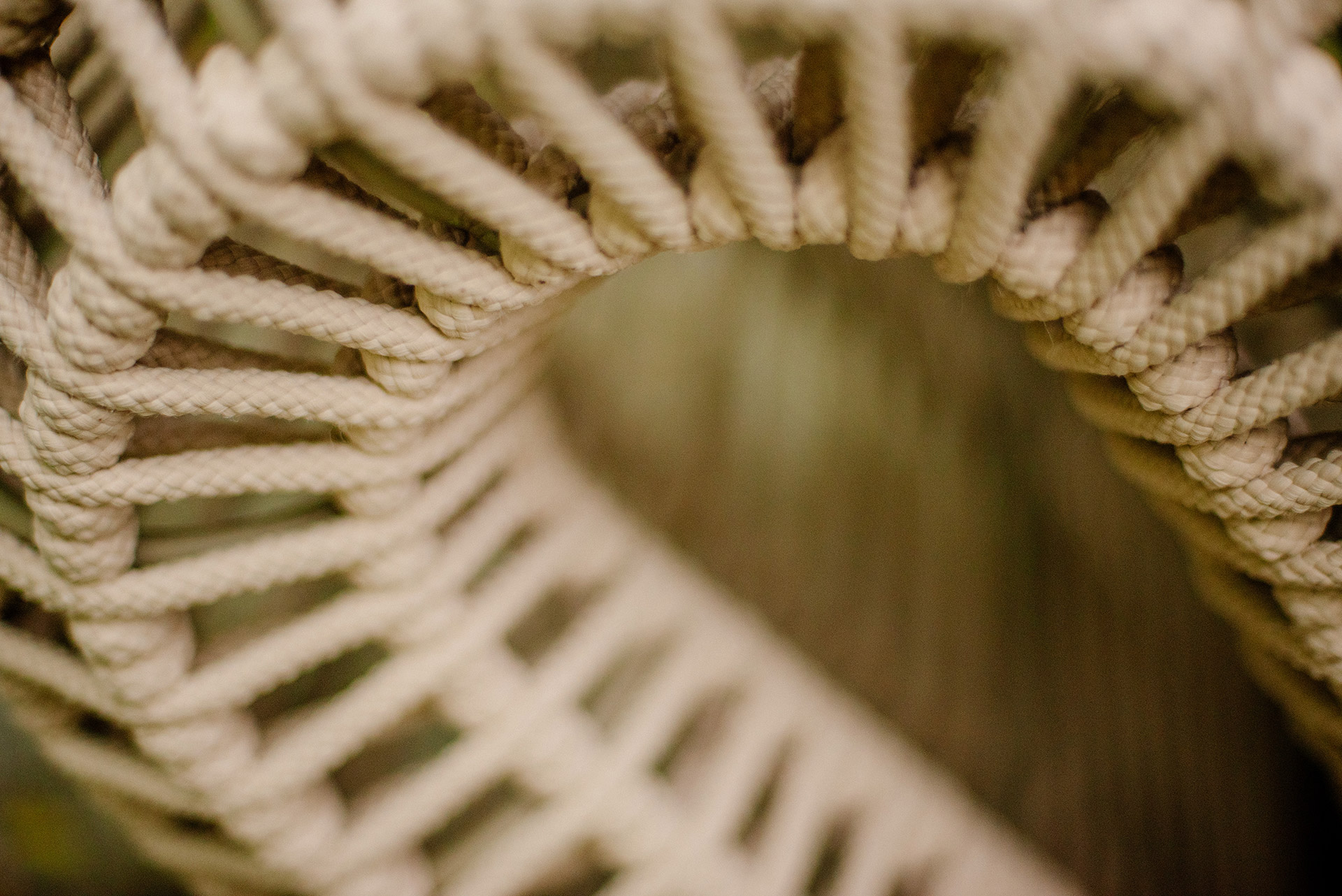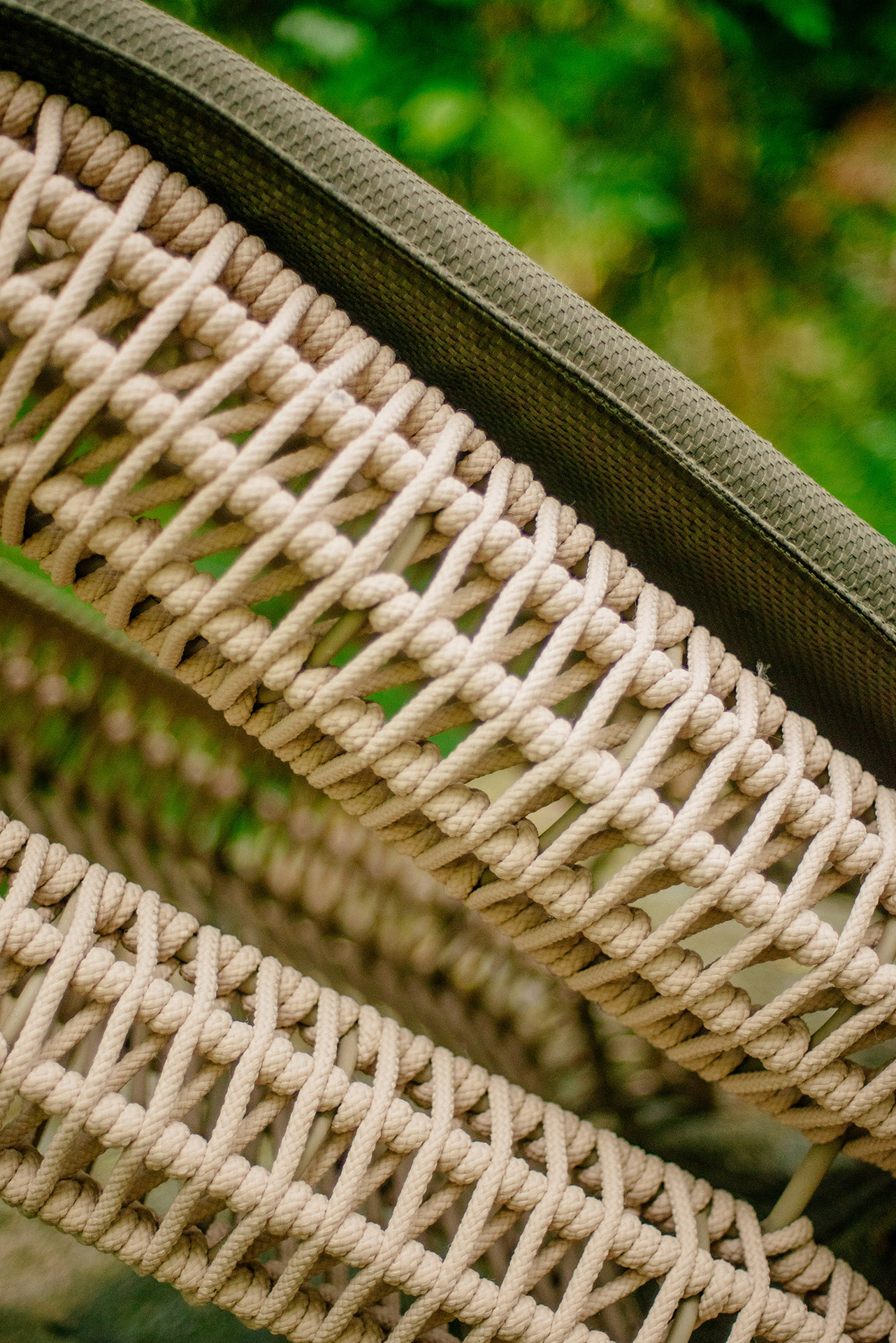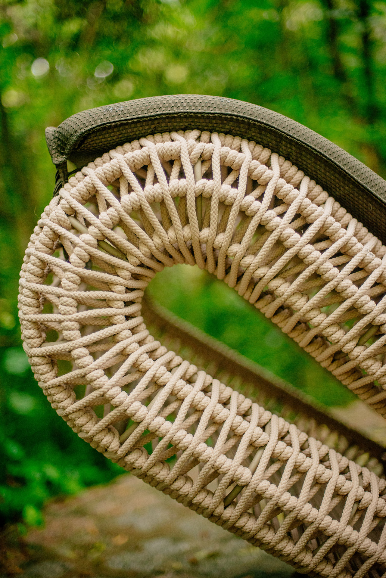 Estrutura em alumínio, pintura eletrostática e revestimento em corda náutica cilíndrica 10mm.