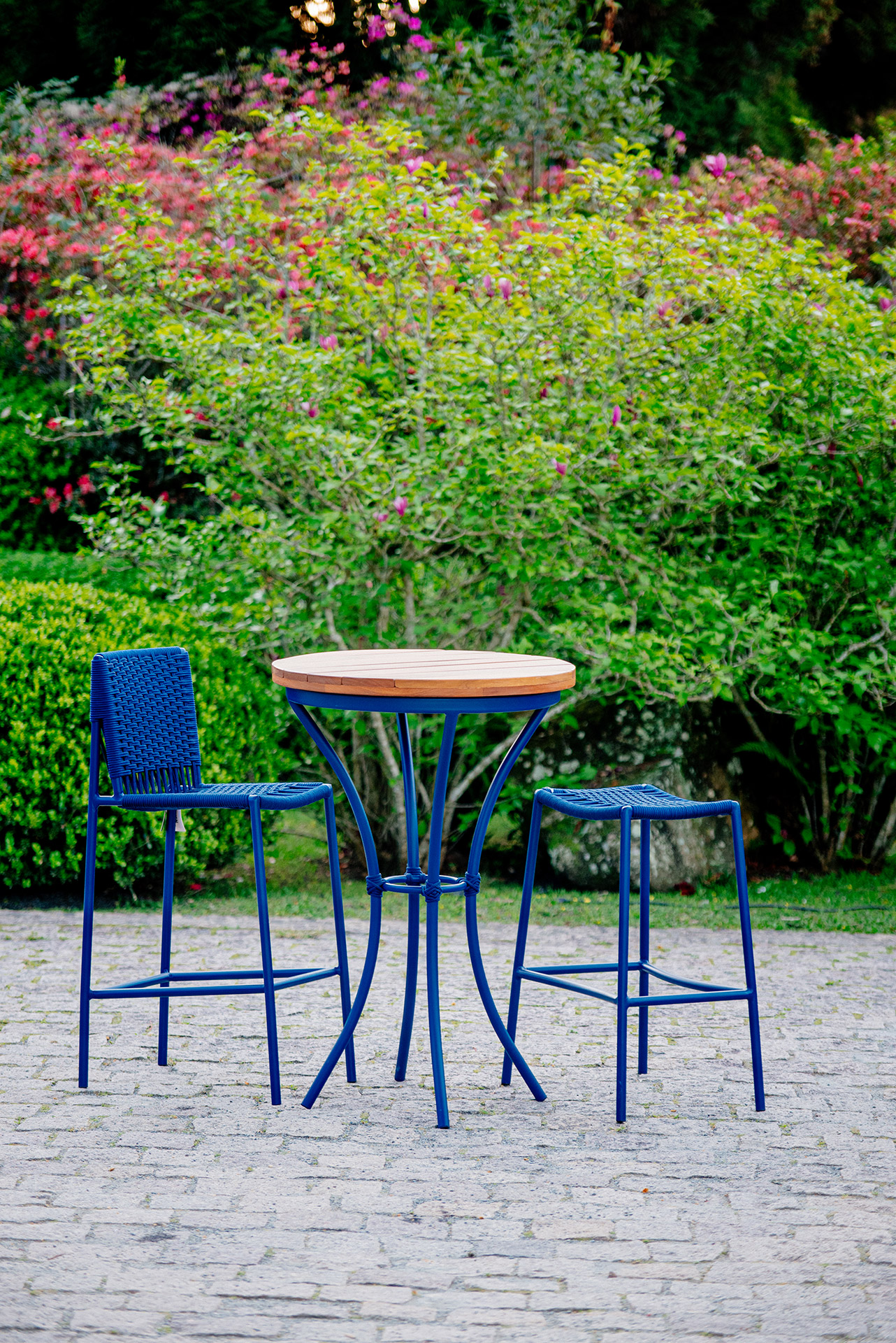 Estrutura em alumínio, pintura eletrostática e revestimento em corda náutica cilíndrica 6mm.