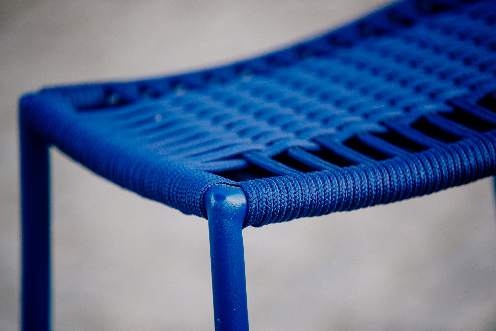 Estrutura em alumínio, pintura eletrostática e revestimento em corda náutica cilíndrica 6mm.