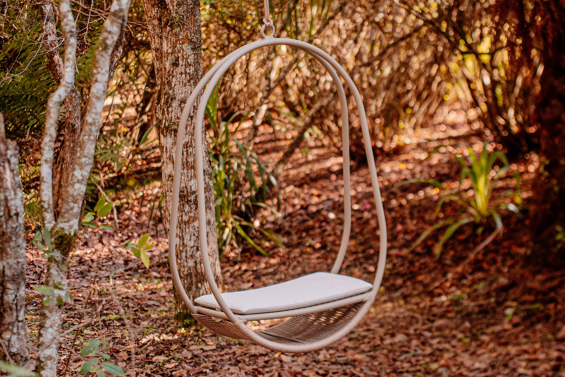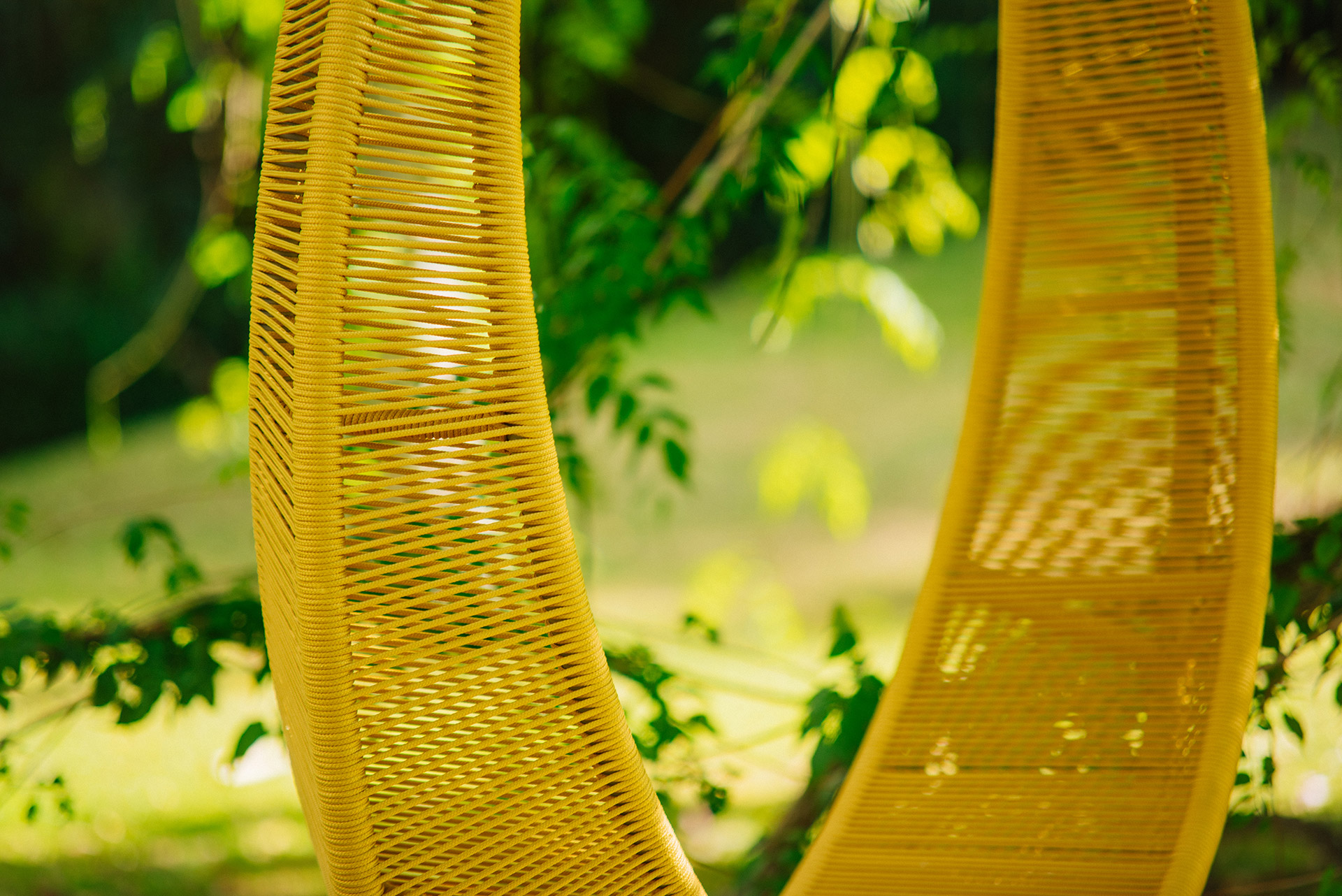 MATERIAL E ACABAMENTO: Estrutura em alumínio, pintura eletrostática e revestimento em corda náutica cilíndrica 4mm. MEDIDAS: 0,80 x 0,42 x 1,30 m bloco 3d: