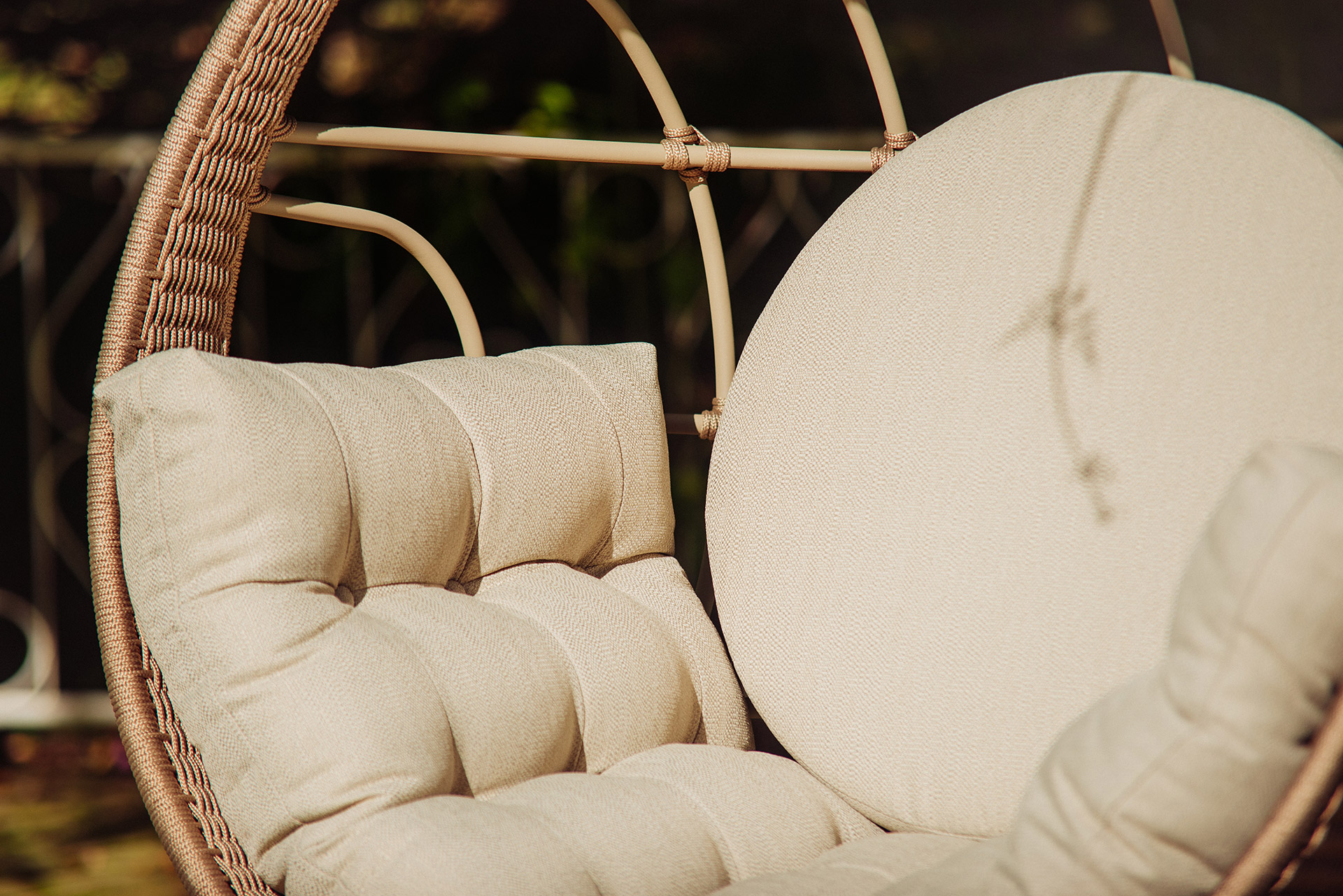 MATERIAL E ACABAMENTO: Estrutura em alumínio, pintura eletrostática e revestimento em corda náutica cilíndrica 6mm. MEDIDAS: 1,90 x 1,90 x 0,42 m bloco 3d: