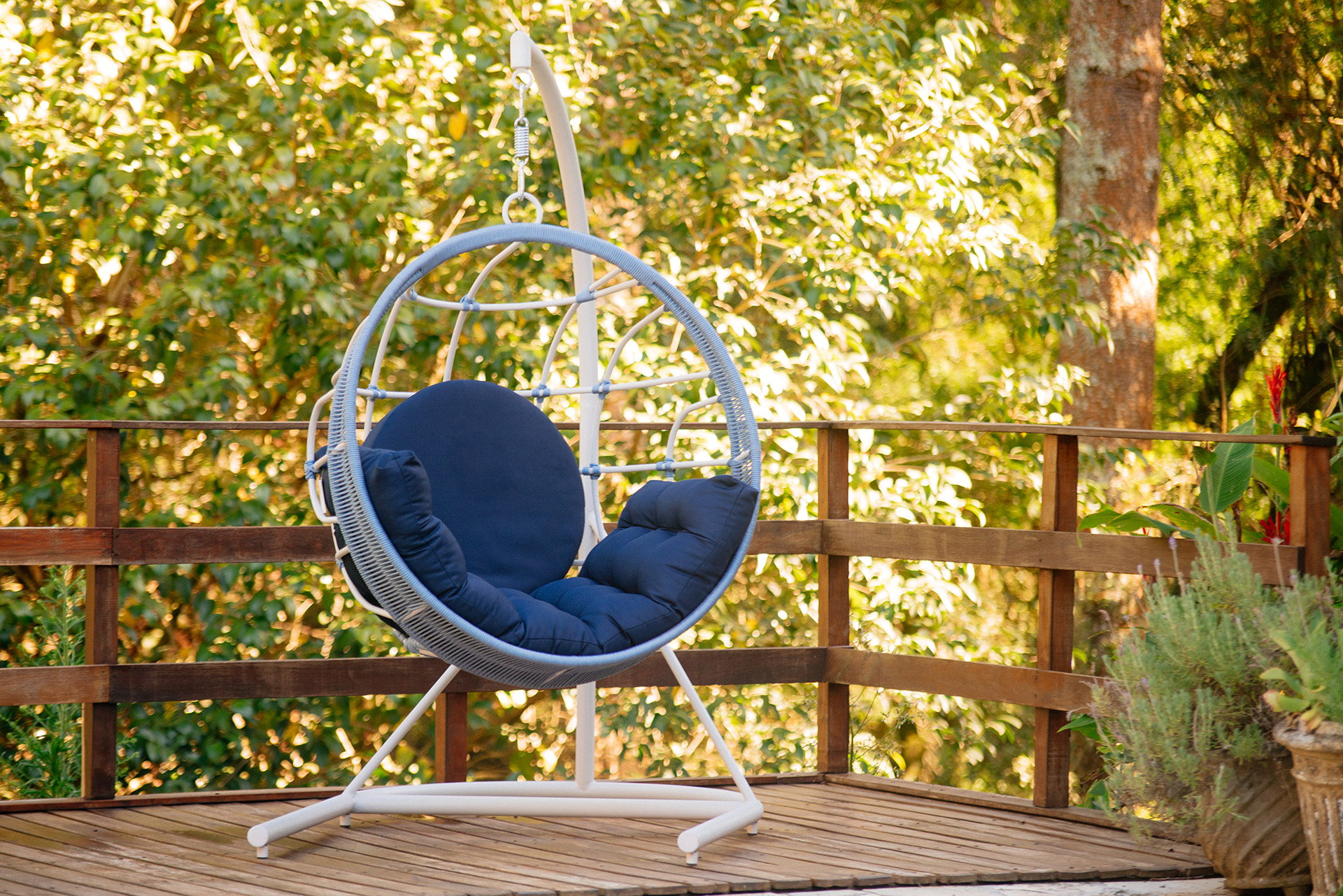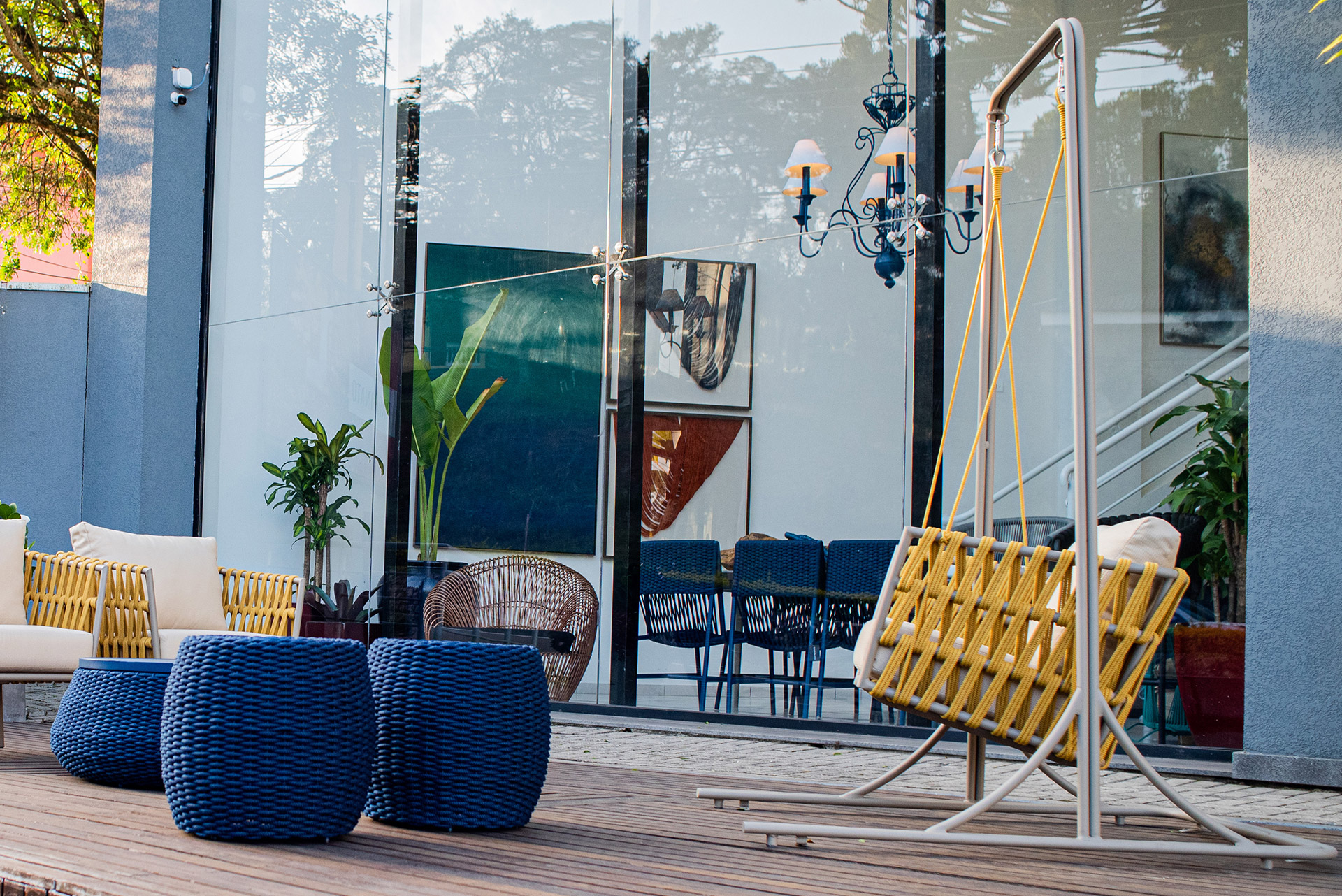 MATERIAL E ACABAMENTO: Estrutura em alumínio, pintura eletrostática e revestimento em corda náutica cilíndrica 10mm. MEDIDAS: 1,09 x 1,16 x 0,80 m bloco 3d: