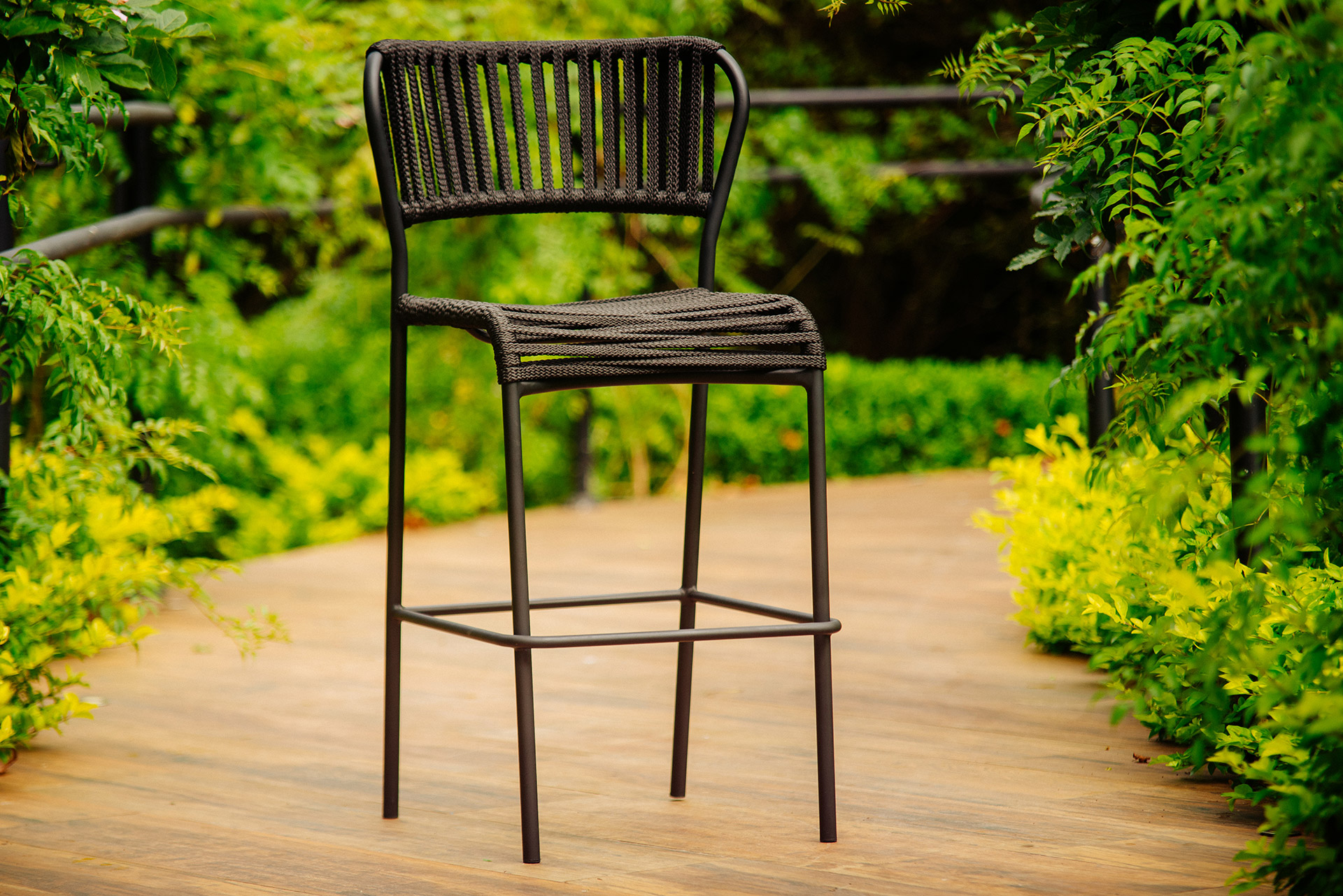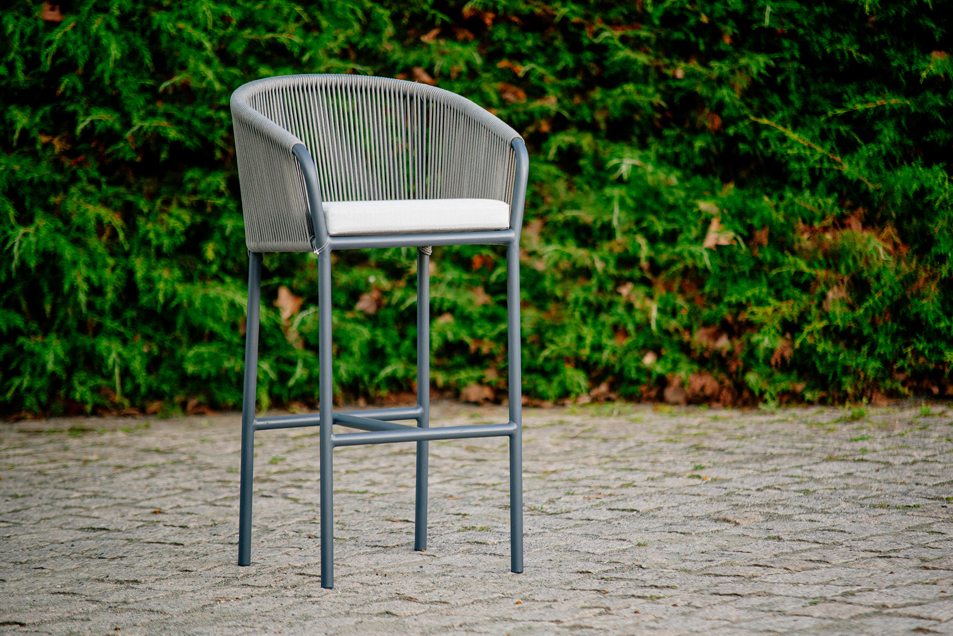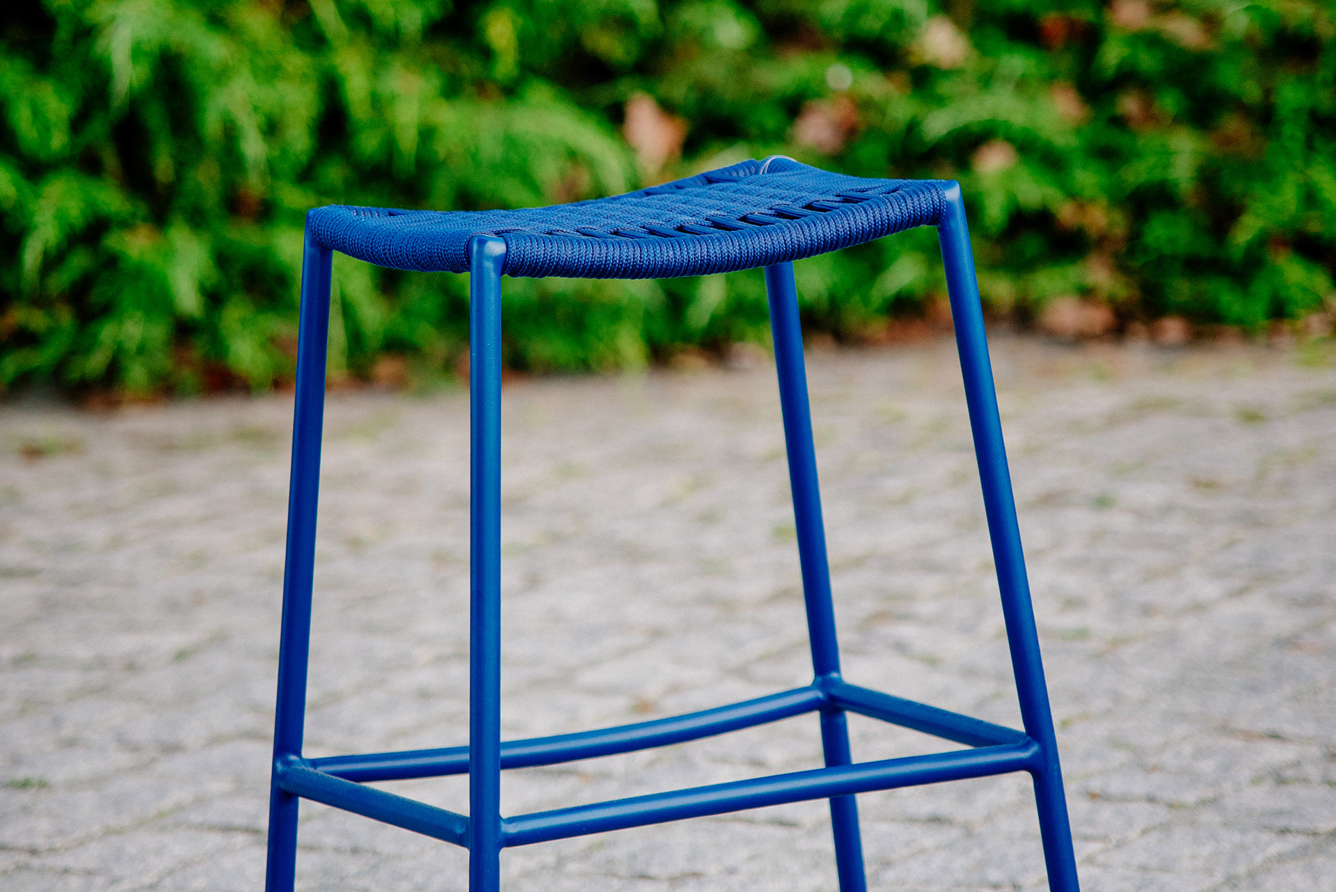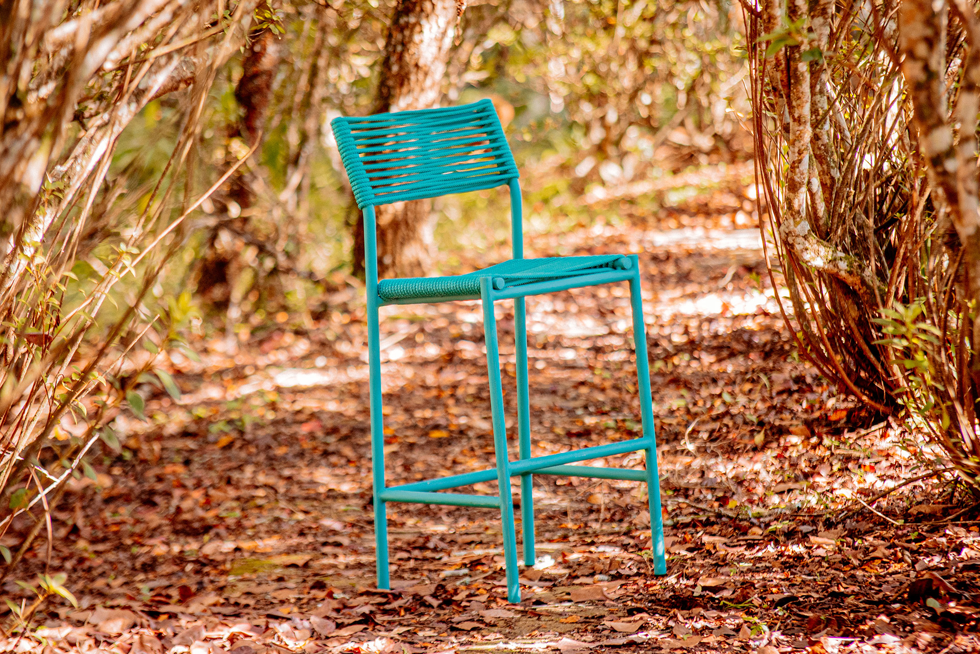 MATERIAL E ACABAMENTO: Estrutura em alumínio, pintura eletrostática e revestimento em corda náutica cilíndrica 10mm. MEDIDAS: 0,46 x 0,45 x 1,04 Altura até o