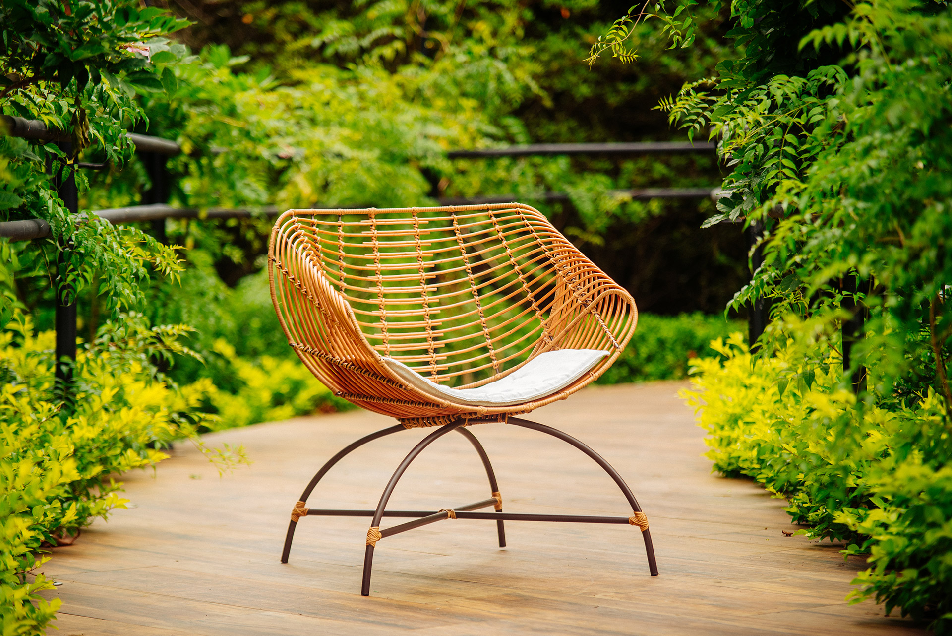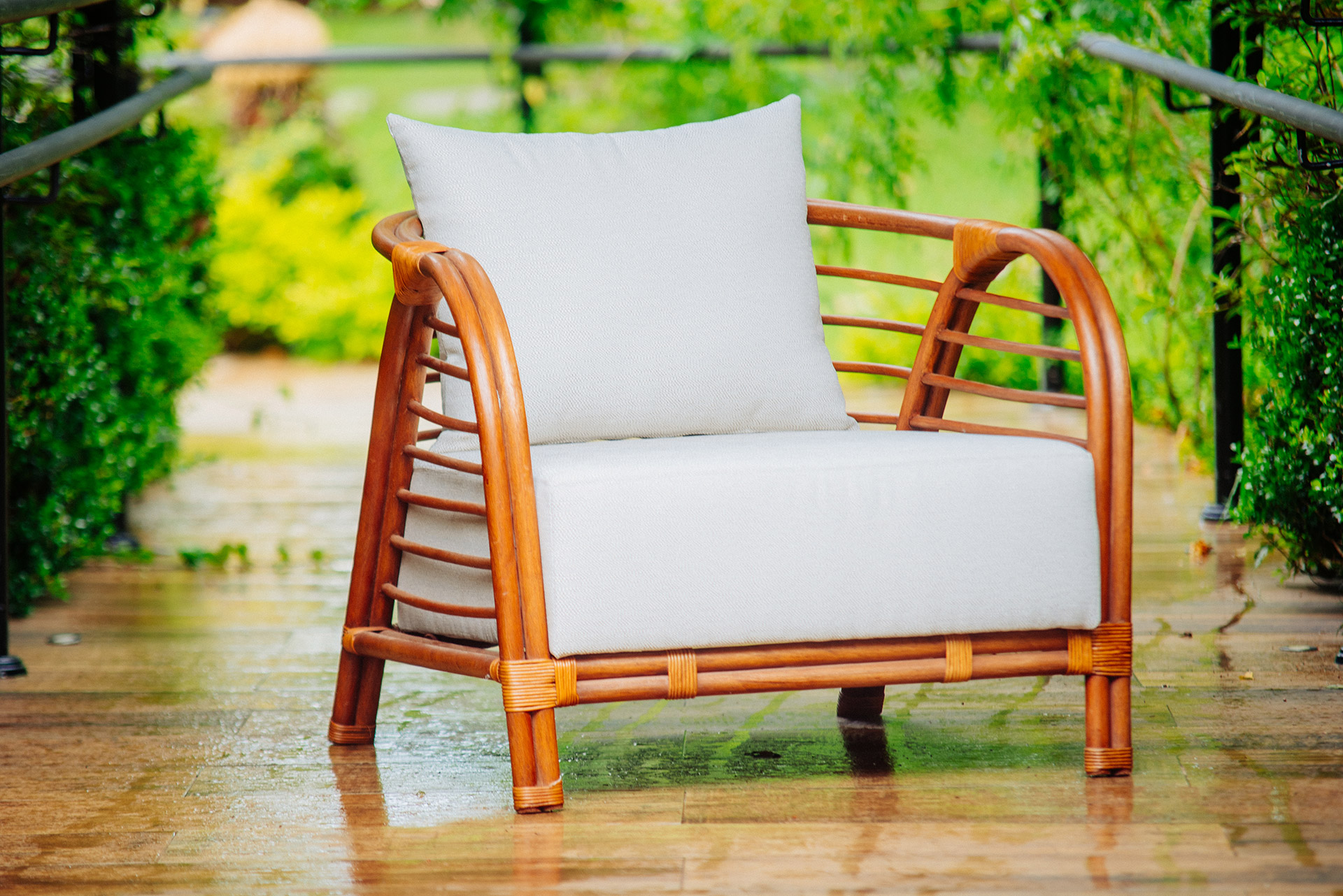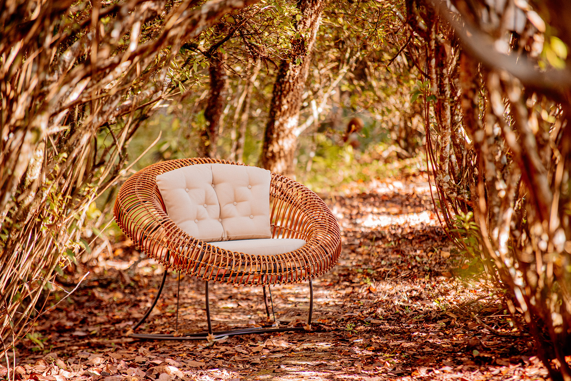 MATERIAL E ACABAMENTO: Estrutura em apuí, revestimento em fibra sintética e amarras em junco. MEDIDAS: 0,72 x 0,70 x 0,78 DESIGN AUTORAL: Guilherme Pella