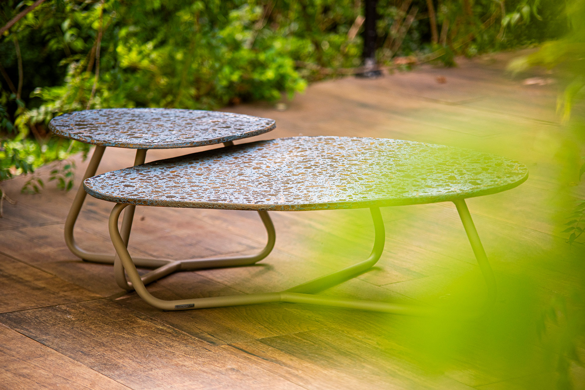 MATERIAL E ACABAMENTO: Estrutura em alumínio, pintura eletrostática e revestimento em corda náutica chata 22mm com tampo em madeira. MEDIDAS: 0,47 x 0,33 x