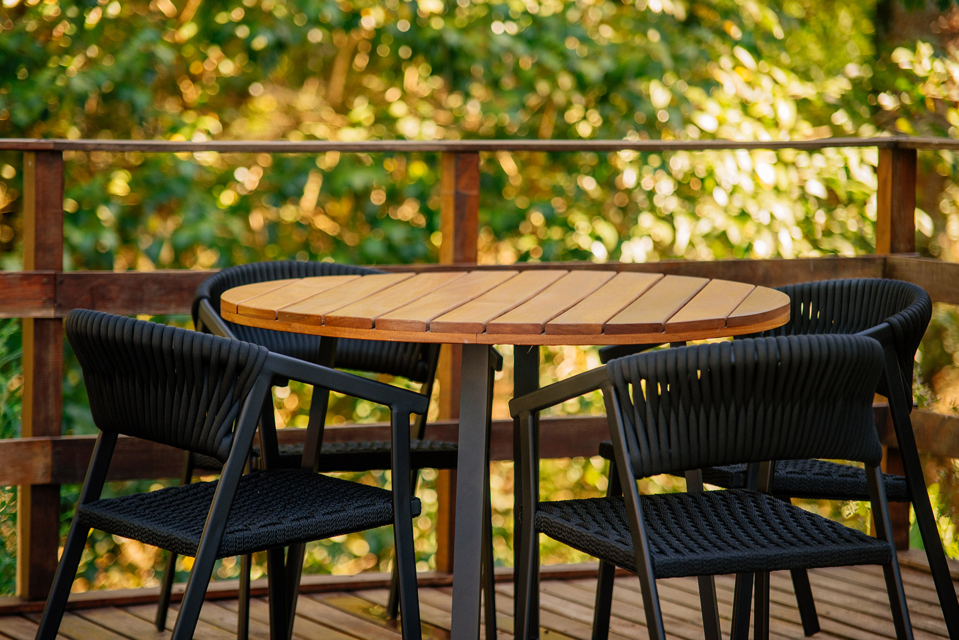 MATERIAL E ACABAMENTO: Estrutura em alumínio, pintura eletrostática e revestimento em corda náutica cilíndrica 6mm e madeira. MEDIDAS: Cadeiras com e sem braço0,60 x